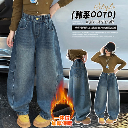 1*4下载视频“25269时尚K描加绒牛仔弯刀裤”